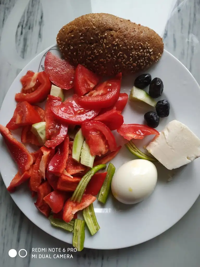 Sabah 1 yumurta 1 cay kasigi yagla pırasa kavurma 1 dilim ekmek 4 zeytin 1 parca peynir çay