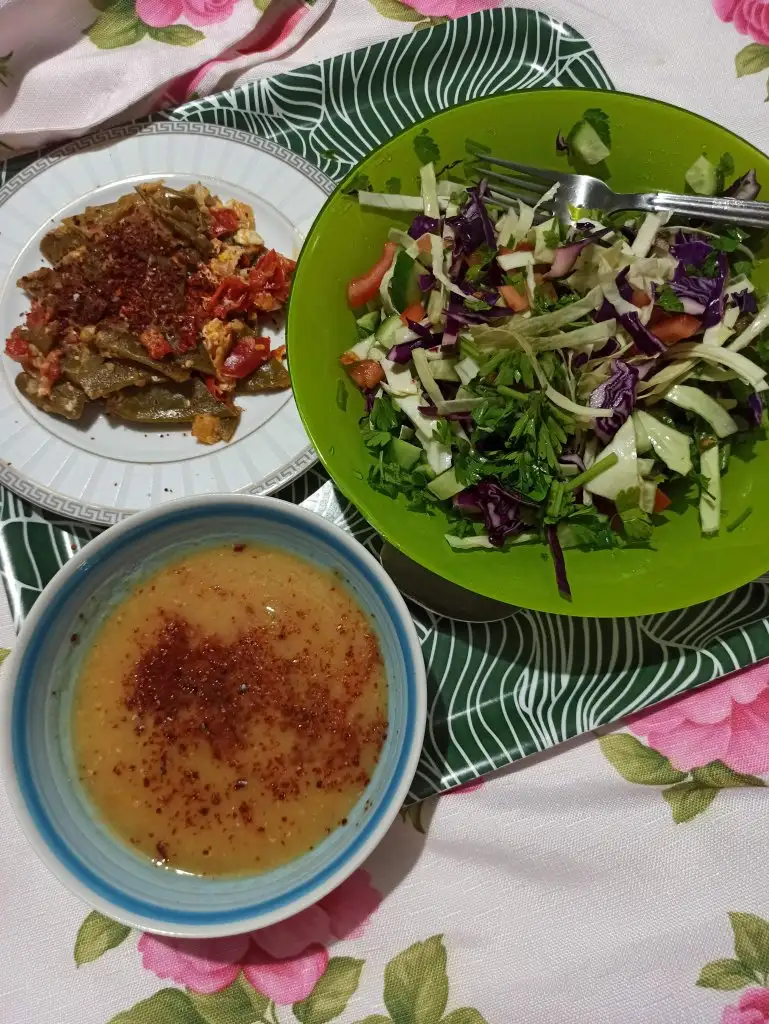 Aksam yesil ve kapya biberli tavuk sote 3 4 kaşık pilav ve salata az da şehriye çorbası