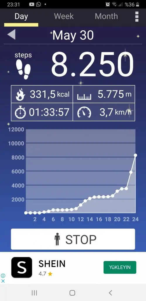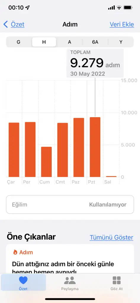 Mesajına gunun tarihi ve adim sayısıni ekleyebilir misin