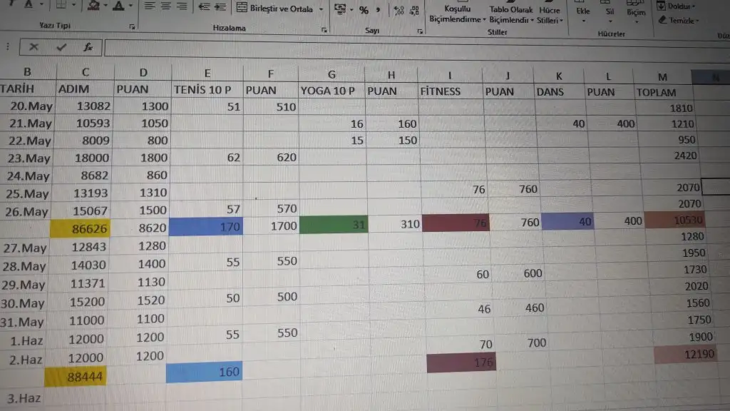 Spor puanım yok4 bin küsür adım vardı sanırım saat bi gün öncesini göstermiyor telf eşitliğinde de bulamadım malesef
