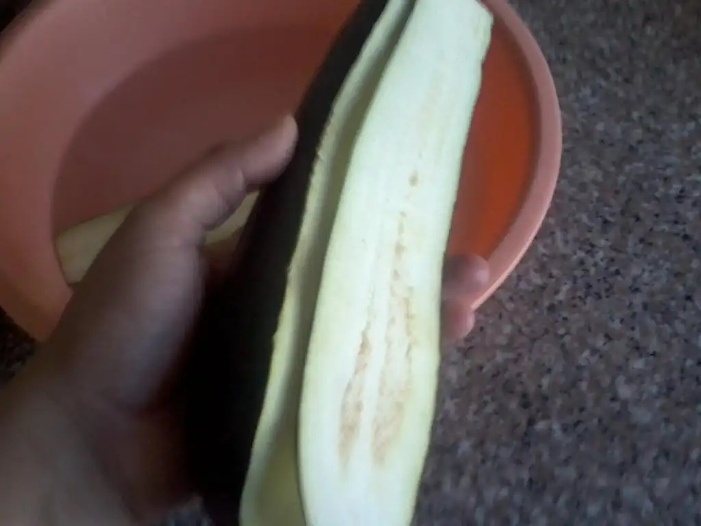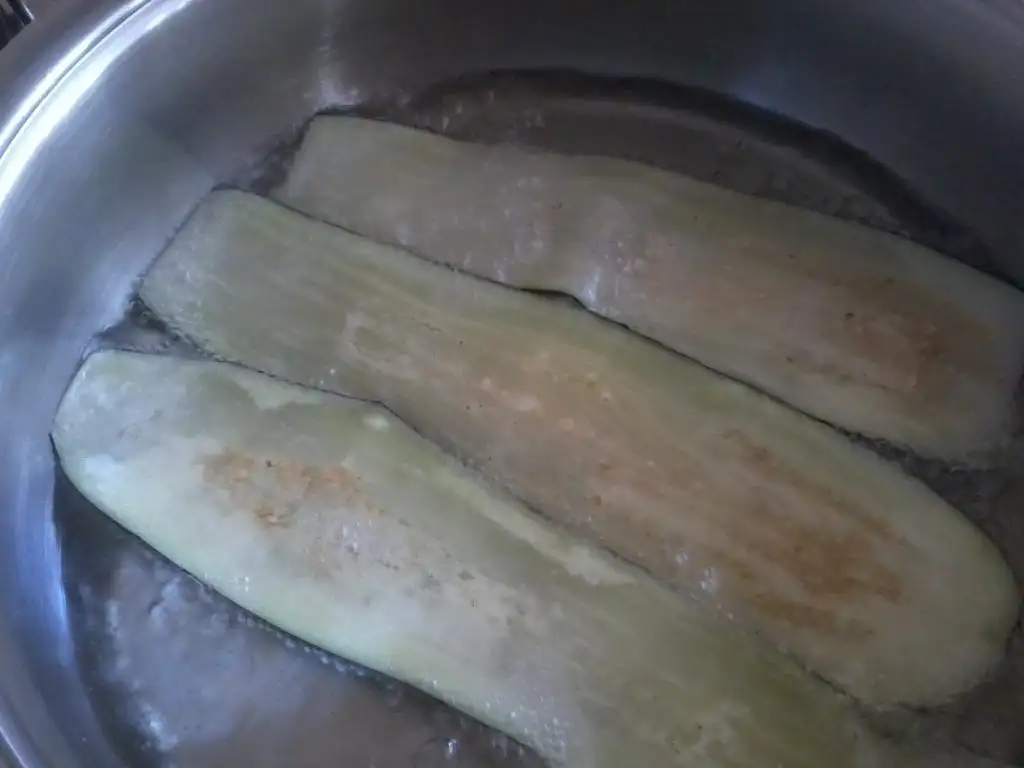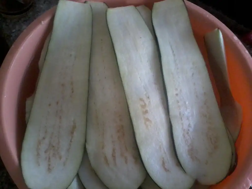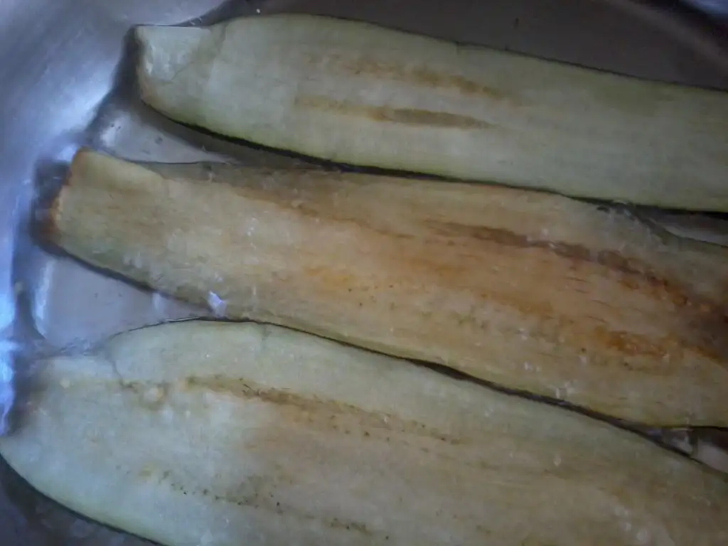 arkadaşlar ilk önce patlıcanlarımızı resimlediğim gibi uzunca kesip tuzlu suda 15-20 dk bekletiyoruz..sonra sudan çıkartıp temiz bir bez ile fazla suyundan arındırıyoruz..derin bir tavada patlıcanlarımızı hafif kızarana kadar arkalı önlü kızartıyoruz ve soğumaları için beklemeye alıyoruz..