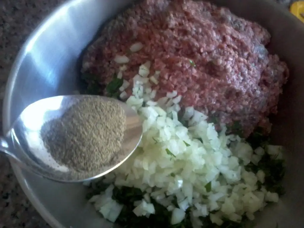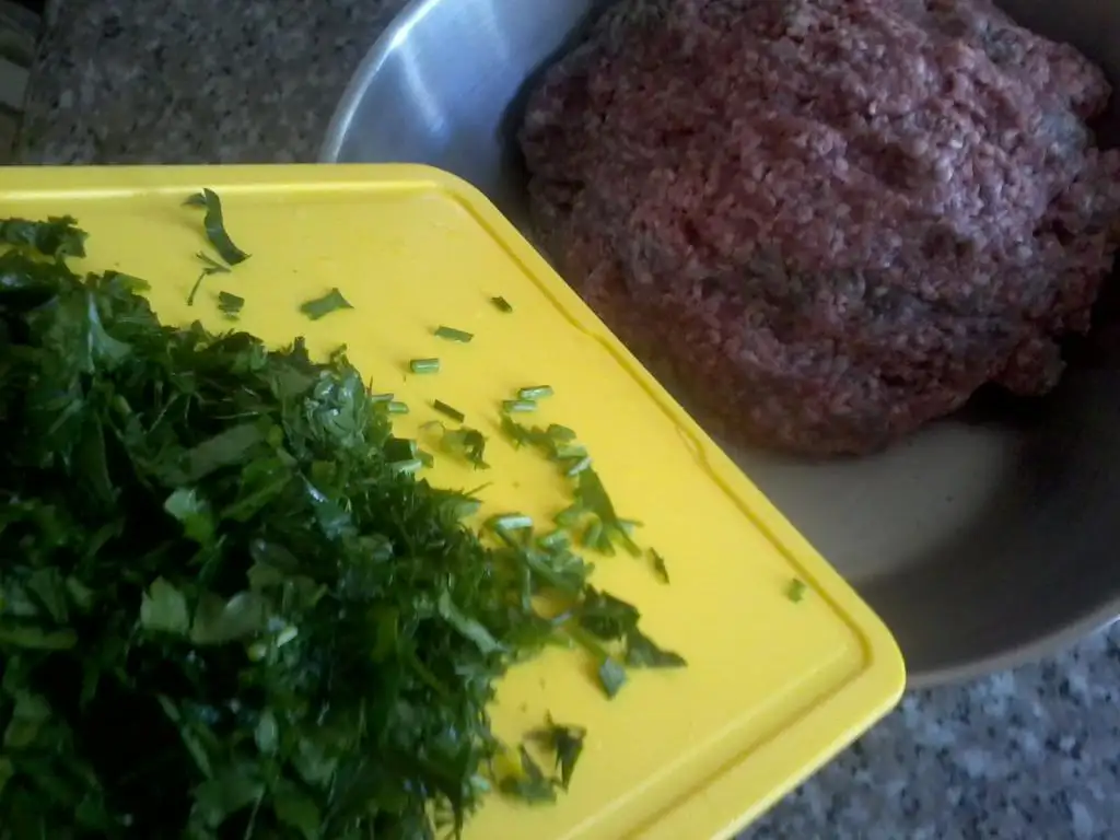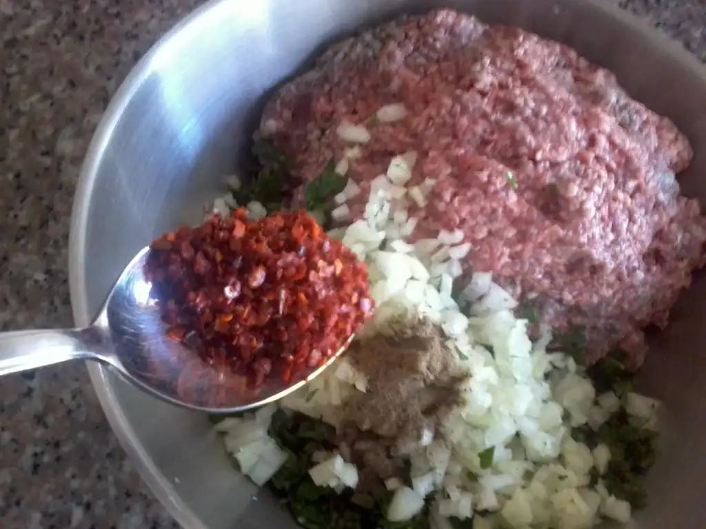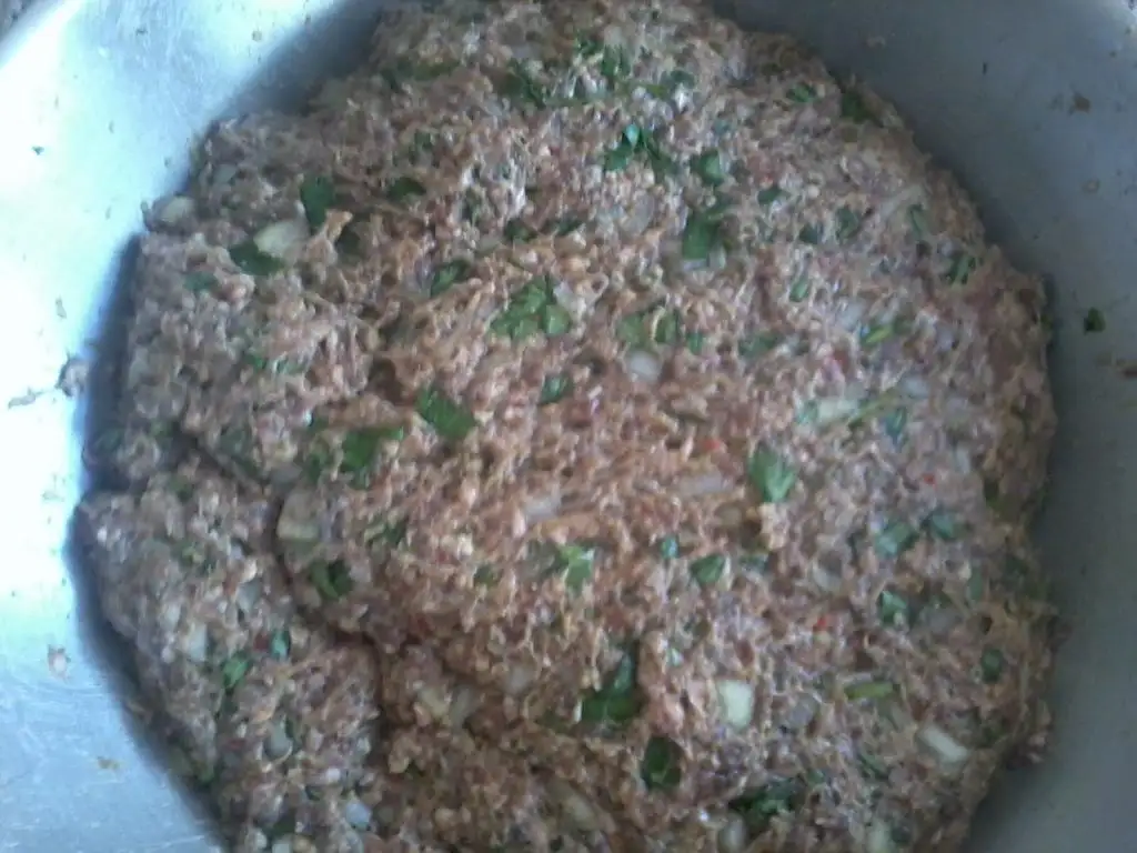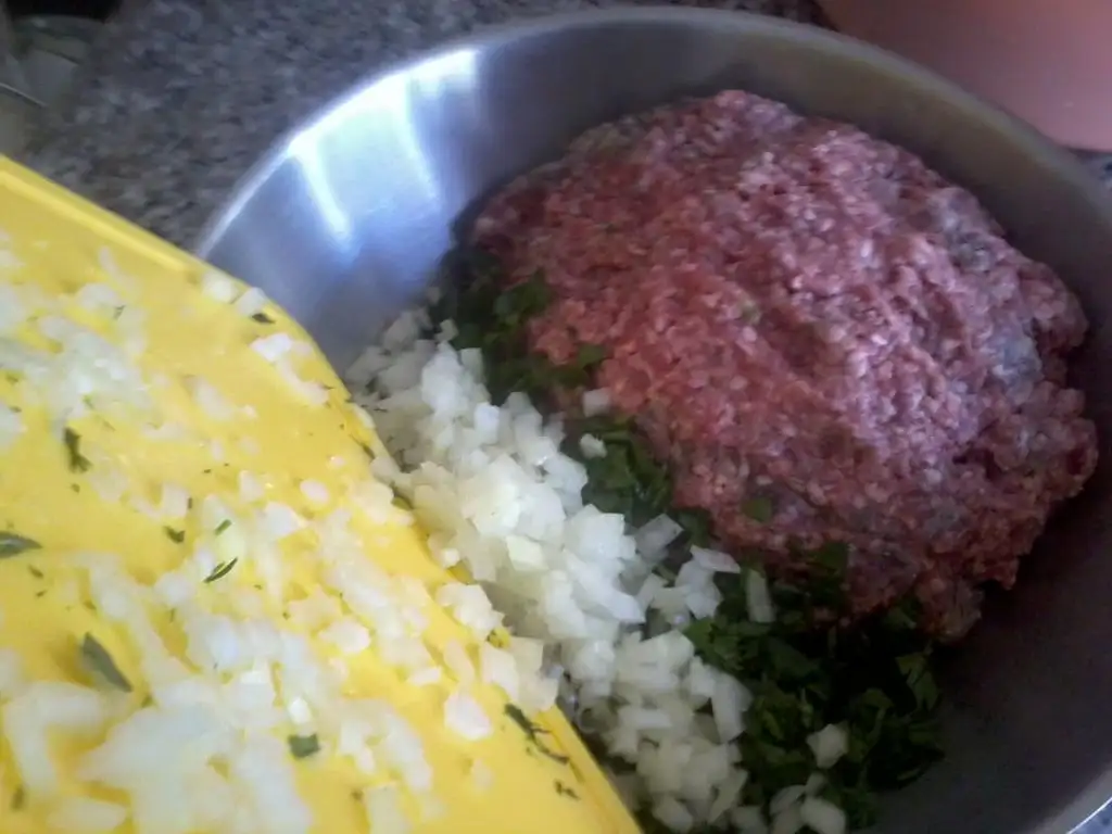 diğer yandan içinde kullanacağımız tüm köftelik malzemeleri minik minik doğruyor yoğuruyor ve buzdolabında yaklaşık yarım saat dinlendiriyoruz.
