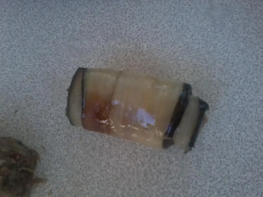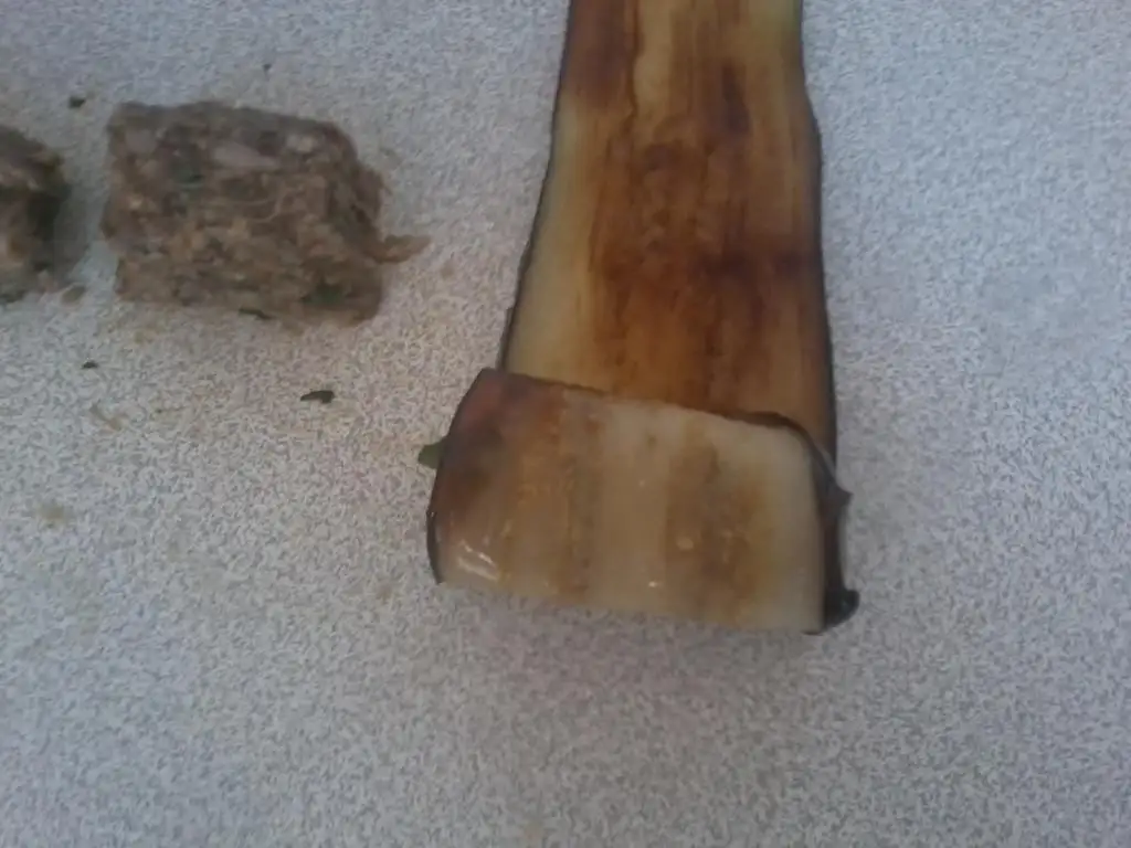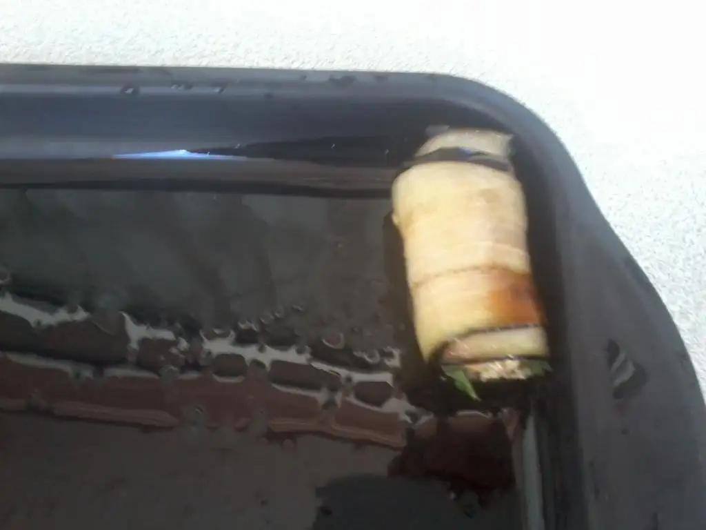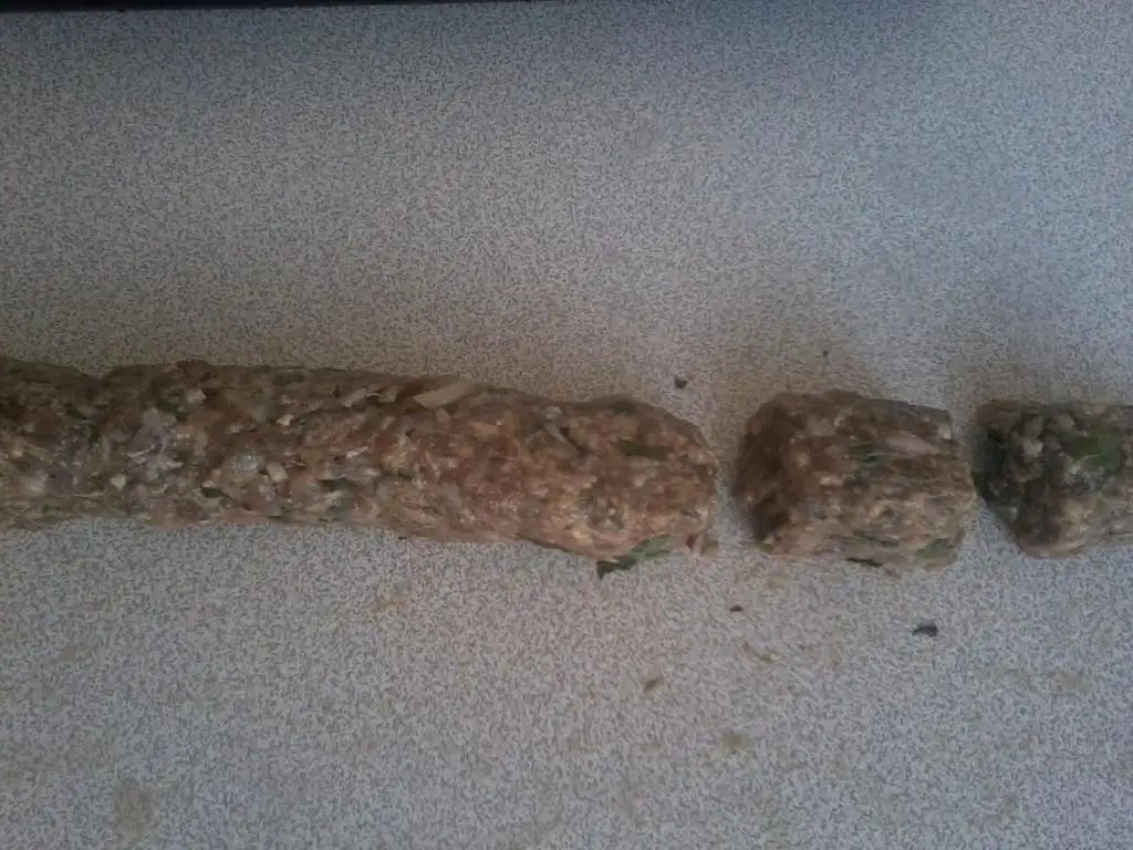 kızartmış olduğumuz patlıcanları tek tek masaya koyup hazırladığımız köfteyi rulo haline getirip parmak kalınlığında kesip,her bir patlıcanın ucuna köftemizden koyup rulo halinde sonuna kadar sarıyoruz..