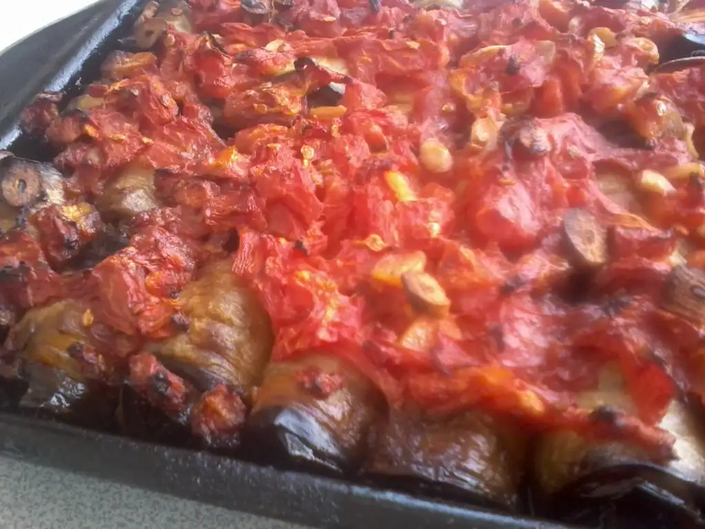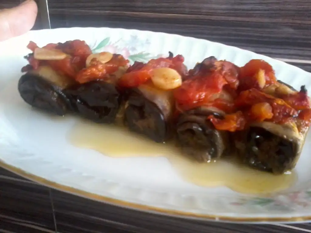 elossacım patlıcan sarmanı yaptım eşim domates sevmediği için az koydum bide tane sarımsak yerine toz sarımsak serpiştirdim seninki kadar güzel olmasada bu da benim patlıcan sarmam
