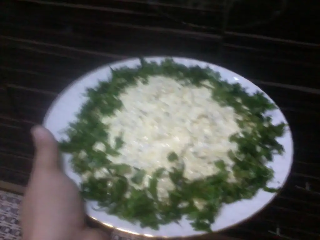 ardından servis tabağıma alıp maydanozlarla süsledim...biz dereotluda çok seviyoruz içerisine 3-4 dal minik minik dereotuda doğradım.