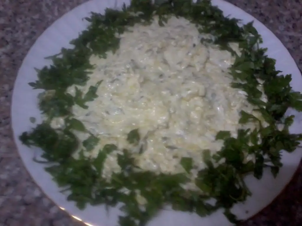 kabakları soğumaya bırakıp bi taraftanda bir kasede 7-8 yemek kaşığı yoğurt ve 1-2 yemek kaşığı kadar mayonezi karıştırdım.içerisine 2 diş sarmısağı ezip ekledim ve bu sarmısaklı mayonezli yoğurt kaışımını kabaklarla buluşturdum:)
