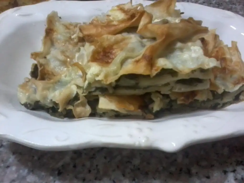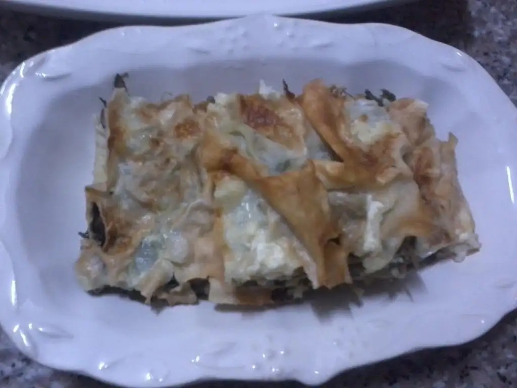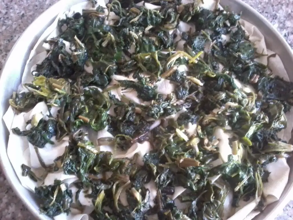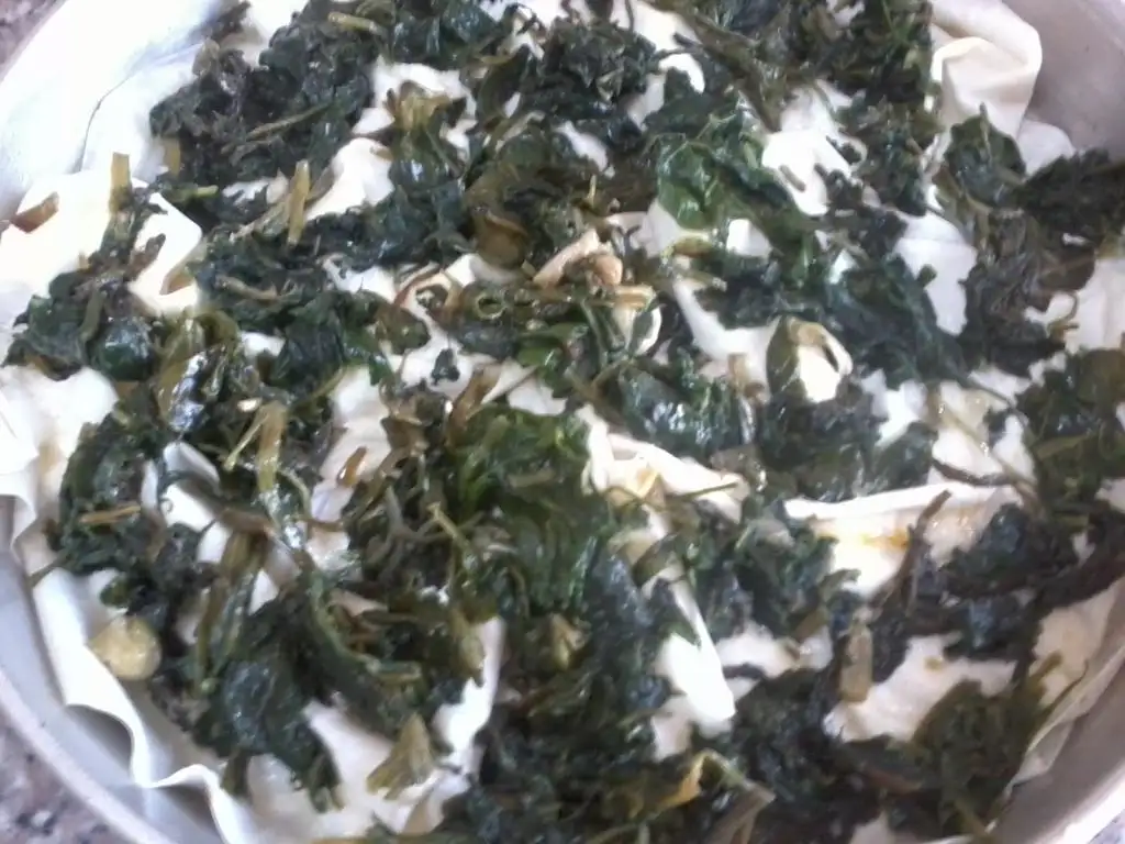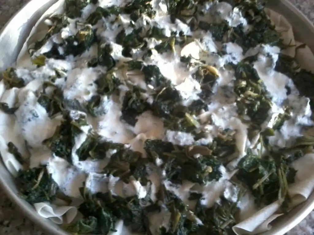 yoğurt,yumurta,yağ ve tuz bir kasede çırpılır..yağlamış olduğumuz tepsimize yufkamızı bir tanesi serilir ve bu karışımdan dökülür..üzerine ıspanaklarımızın bir kısmı eklenerek diğer yufkamıza geçilir ve aynı işlemler tekrarlanır..yufka miktarını isteğe göre arttırabilirsiniz..