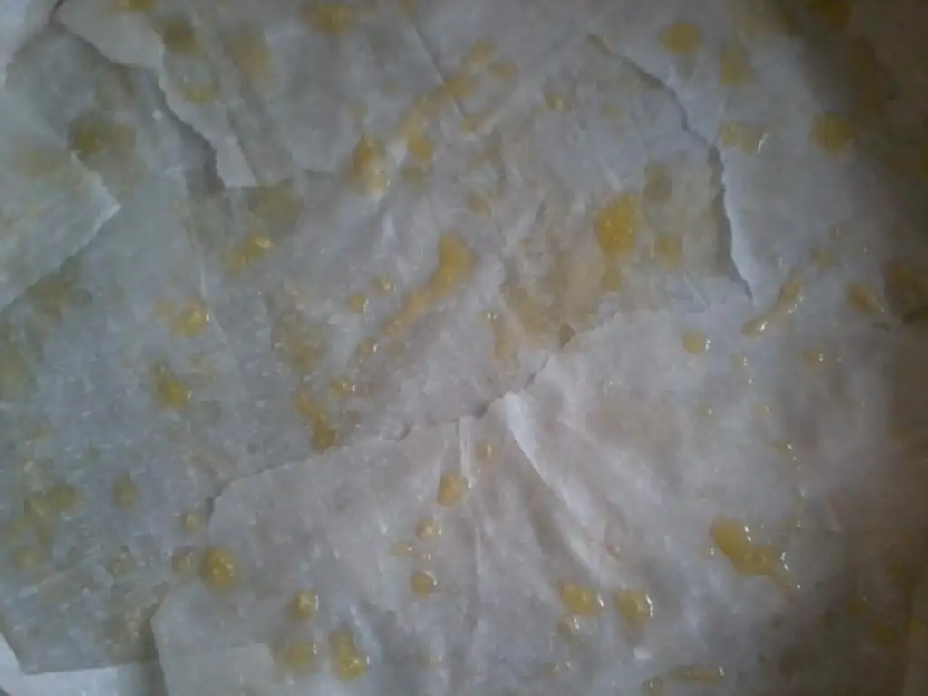 Arkadaşlar ilk önce tereyağımızı eritiyoruz.ardından kullanacağımız tepsimizi tereyağ ile yağlıyoruz.baklavalık yufkamızın 1 yaprağını zemine seriyoruz ve üzerine fırça yardımıyla erittiğimiz tereyağdan serpiyoruz (dikkat edin fırçayla sürmüyoruz sadece serpme yapıyoruz)