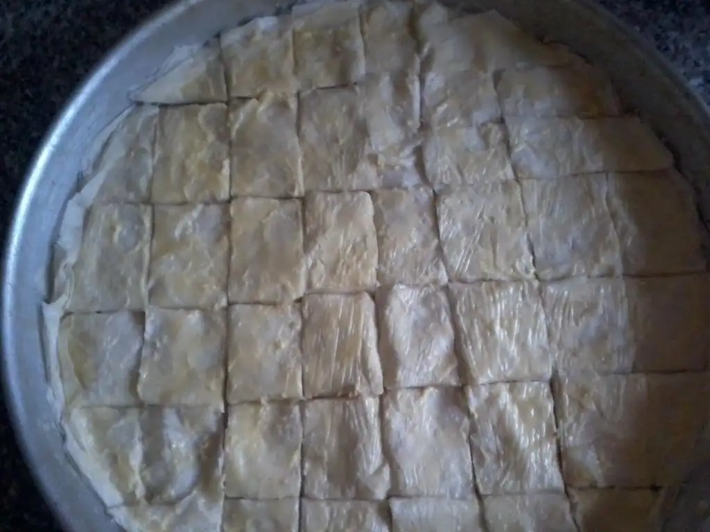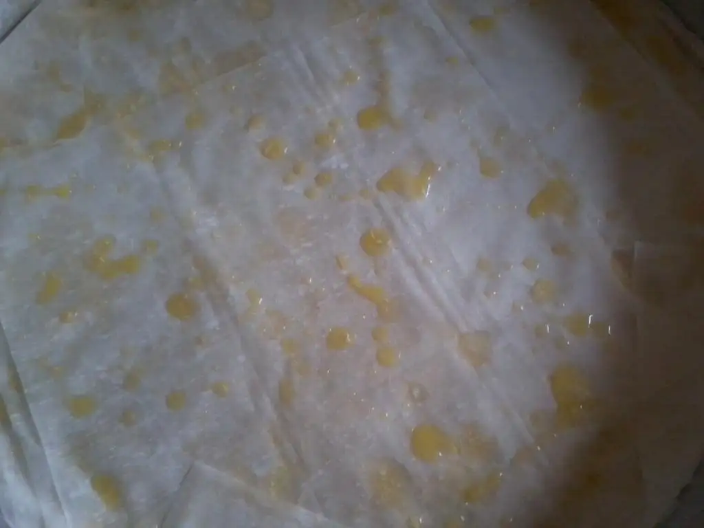 sonra yine bi önceki yaptığımız işlemi yani yufka tereyağ sıralamasını yapraklar bitene kadar sürdürüyoruz.