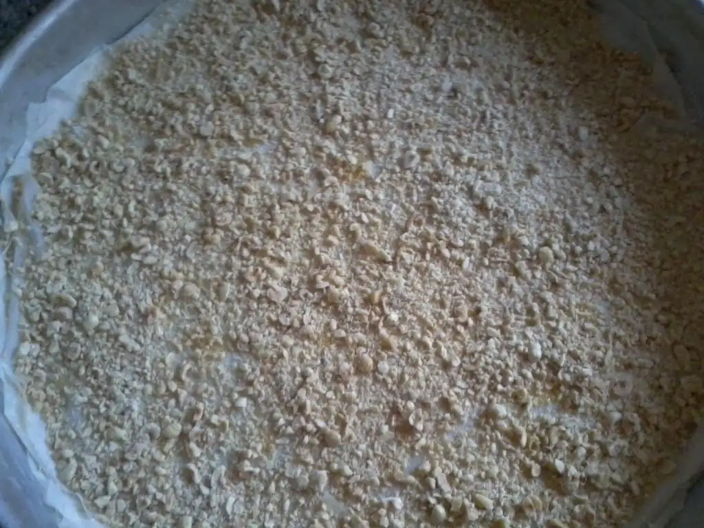 bu işlemi baklavalık yufkalarımızın yarısına gelinceye kadar yapıyoruz..yarısını bu şekilde tepsimize yerleştirdikten sonra fındık içimizi rondodan geçirip yufkaların heryerine hepsini dağıtıyoruz.