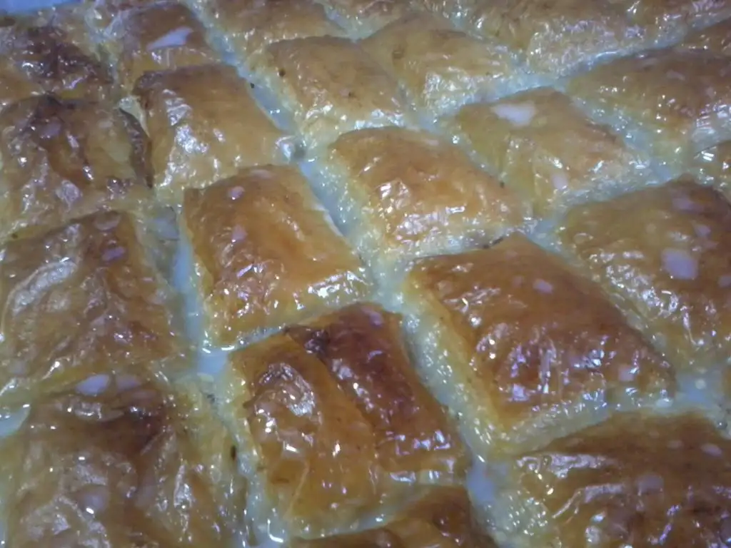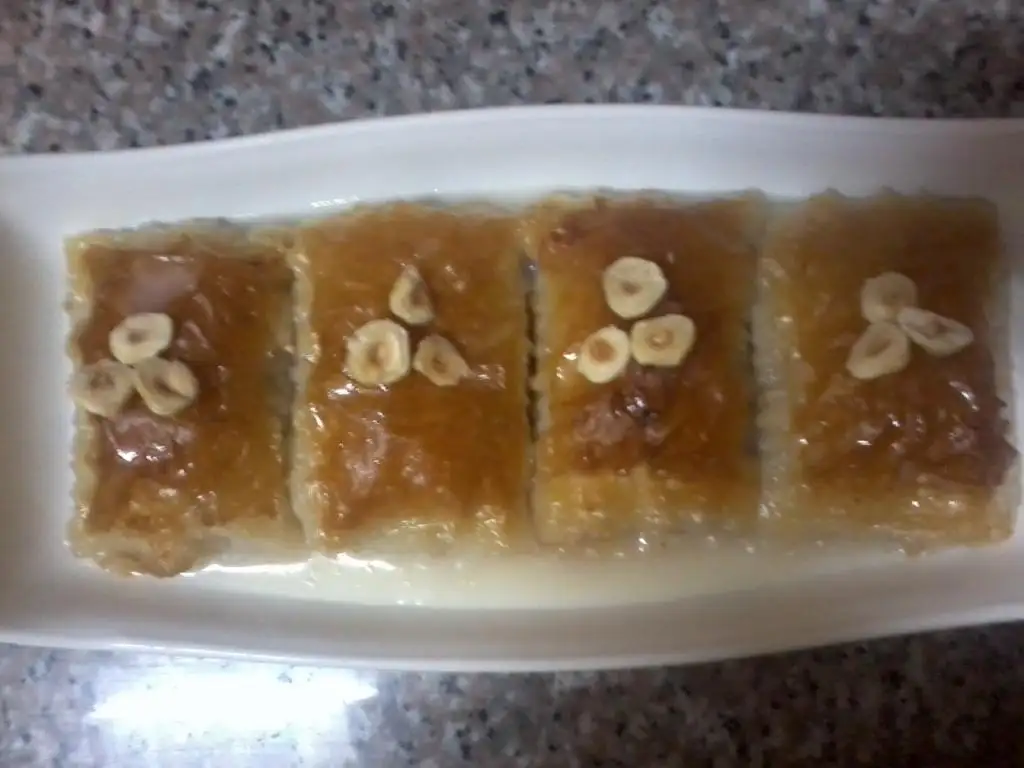baklavamız piştikten sonra sıcak haldeyken,soğuğa yakın ılık şerbetimizi heryerine döküp şerbetini çekmesini bekliyor afiyetle yiyoruz:)