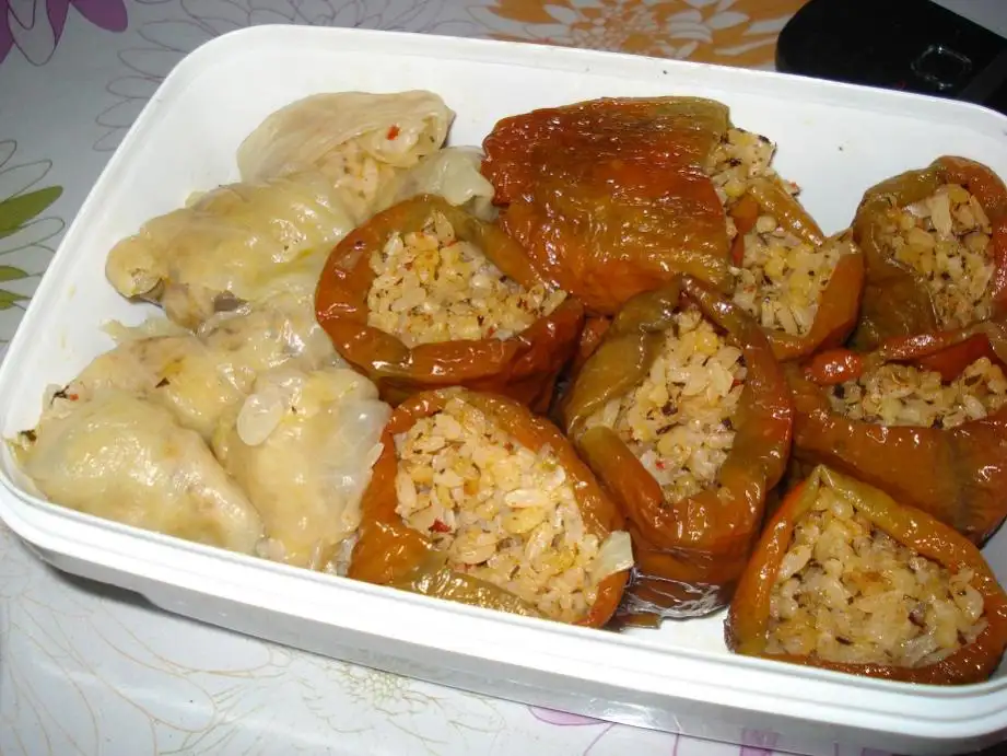 Dün yaptığımız patlıcan ve biber dolmamız.Elossa'nın tarifiyle.Ama ocakta pişirdik.Çok güzel oldu.Teşekkürler Elossa.:119: