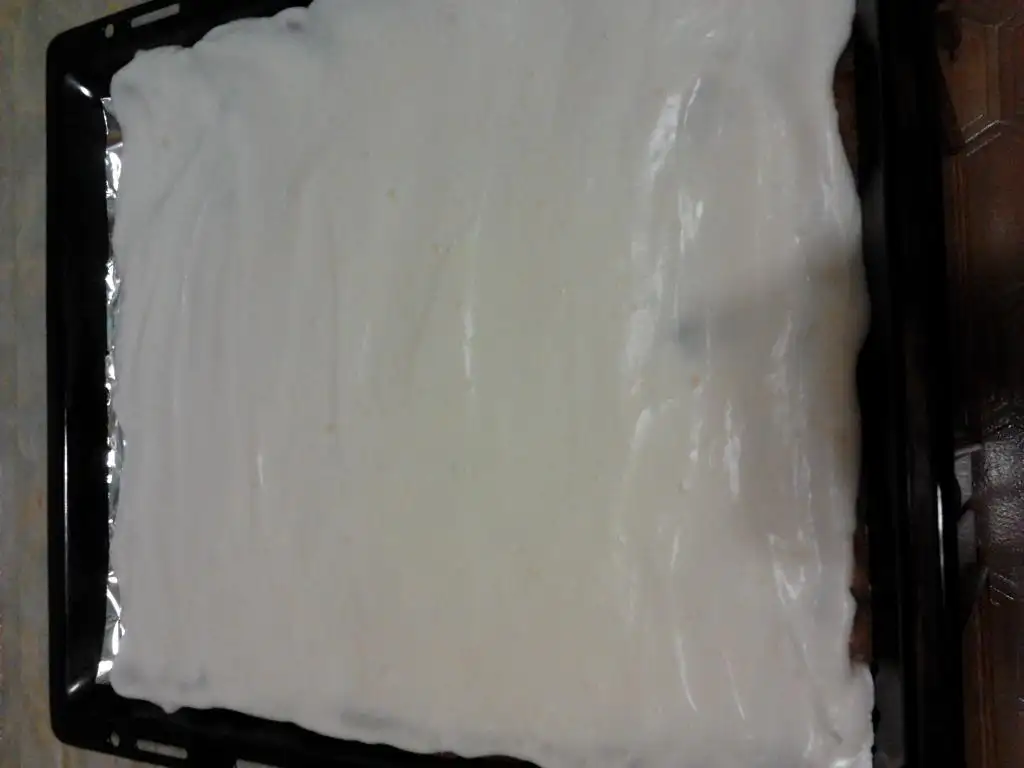 hafif soğuyan muhallebiye 1 paket toz kremşanti döküp tel çırpıcıyla güzelce çırpıyoruz ardından muhallebimizi etimeklerin üzerine yayıyoruz ve dolapta soğumaya bırakıyoruz.