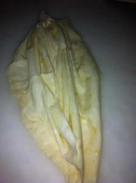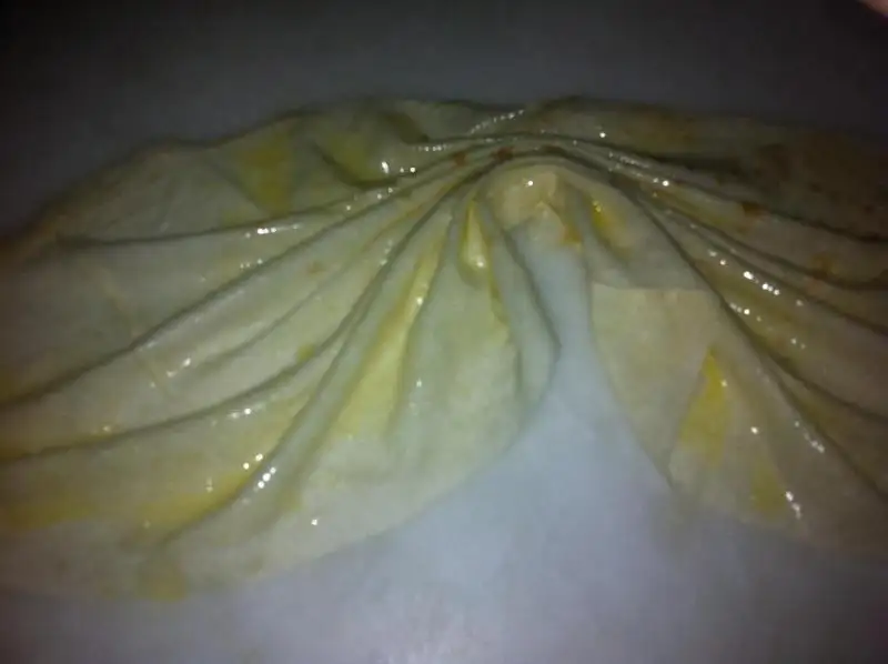 Yufkalar dörde bölünür. Geniş olan kısmı ucu ile büzmek suretiyle birleştirilerek fiyonk şekli verilir. Bu fiyonkun iki ucu birleştirilip börek içi konulur(benimkiler ıspanak-peynirli) Sarılıp ters çevrilerek tepsiye dizilir. Yapım aşamasını gösteren fotoğraflar alıntıdır. Bir önceki resimler tarafıma aittir