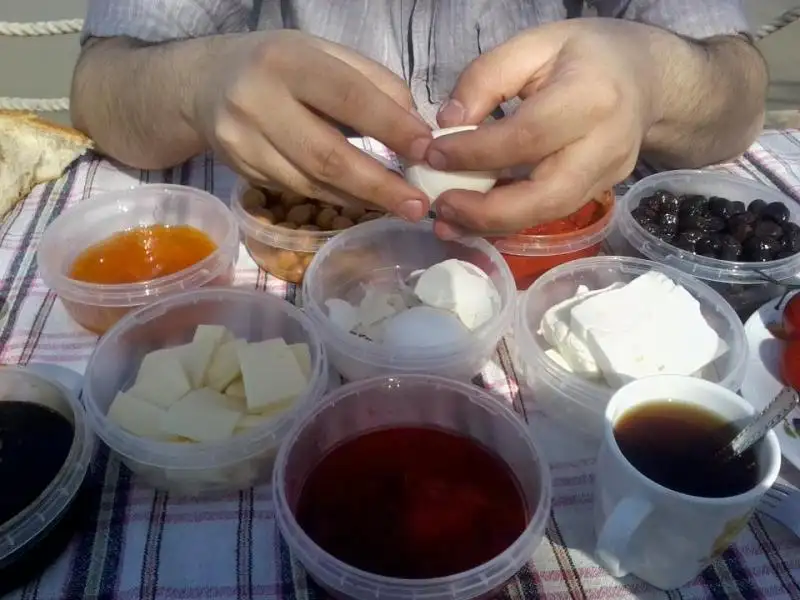 kahvaltıda eski kaşar,beyaz peynir,pekmez,çilek reçeli,kayısı reçeli,yeşil zeytin,siyah zeytin,haşlanmış yumurta,domates,salatalık,annemin kahvaltılık sosu,çay ve huzur vardı