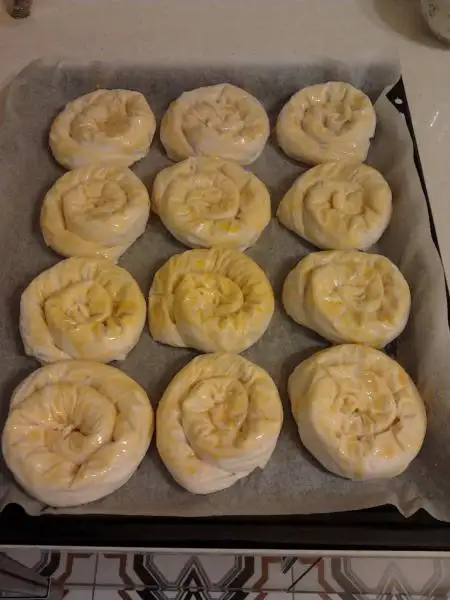 Mayayinin uzerine sekeri ve ilik suyu döktüm elimle karıştırarak mayayi erittim daha sonra unu ve tuzu ilave ettim yumuşacık bir hamur elde edene kadar yogurdum 30 dak mayalandirdim ve bezelere böldum tatli tabagi büyüklüğünde yaparsak 8-9 tane cikiyor. Sizinle esas paylasmak istediğim ben sabah kahvaltiya yaptim ama unum bittiği için sivi yağla actim icine peyniri koyun kenarlarini kapattim ve tekrardan actim ama cok ezmeden yaklasik 1 cm kalınlığında aciliyor . Normalde bazlama yagli yapmiyorlar ama benim bazlamam yagli oldu ve nefis oldu herkeze tavsiye ediyorum yagla acin ister sade isterseniz icine istediginiz malzemeyi koyun nefis oluyor. Tabi unutlmamasi gereken tavadan aldiktan sonra mutlaka bir havlu ya da sofra bezinin icine sarin yumusacik oluyor)