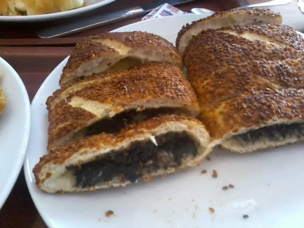 zeytinli poğaça istedi kendileri, gelen poğaça benim ankarada gördüğüm minik minik zeytin demeye bin şahit isteyen içinde altın arar gibi zeytin aradığımız poğaçalara hiç benzemiordu... simsiyah bi poğaça! :53::53: tadı mıııı acayip harika :56::56::56: resmen zeytin tadı geliyor ağzınıza...