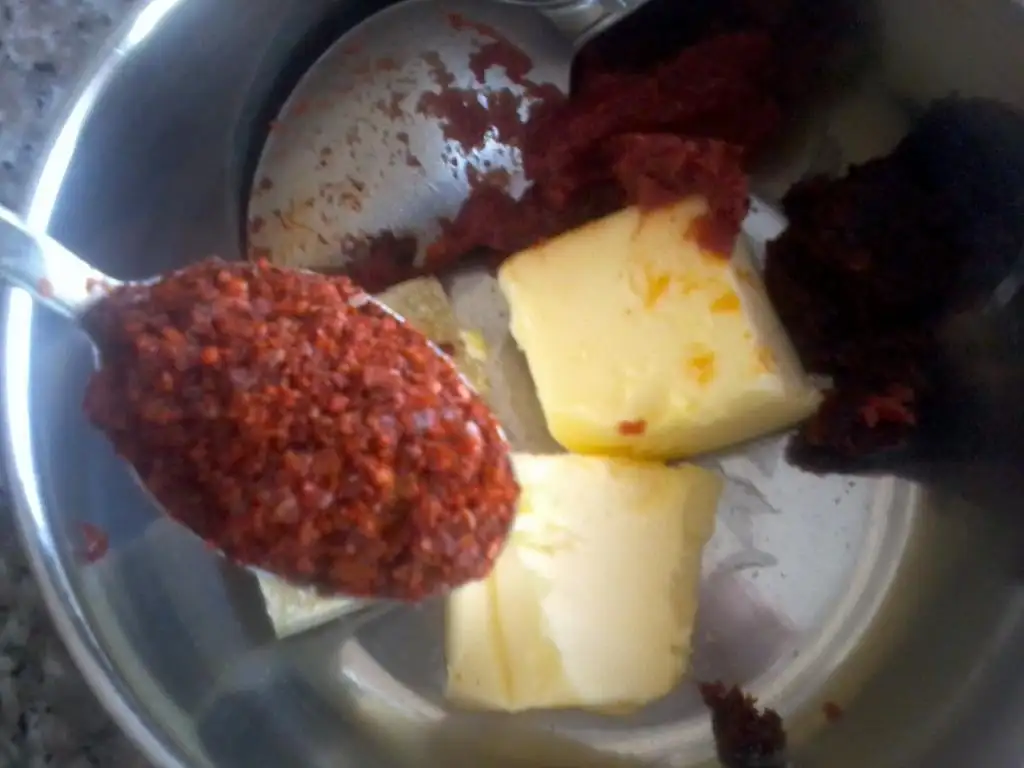 (kızlar benim domates ve biber salçalarım,pul biberlerim kuru nanelerim,tamamiyle ev yapımıdır hepsini annecim yapar.bu çorbada kullanmış olduğum biber salçası ise Adana ya aittir,kayınvalidecim yapar annemin yaptığı ile ayrıdır lezzeti kokusu çookk acıdır...)