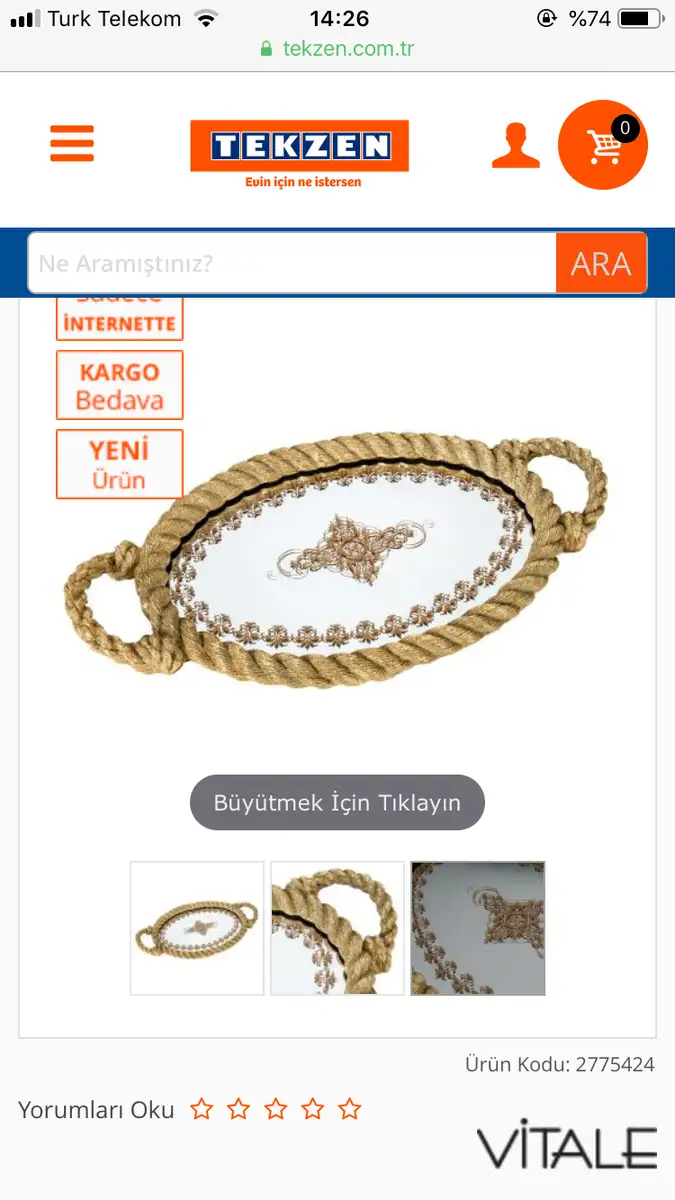 Ben tepsiyi gozum gibi bakiyorum tabiki evde, yukari dolaba bir yere kaldirmistim. İslerim yogun bu ara annemde geleyim azicik ucundan tutarim belki diye geldi. Ve dolaptan birseyler alirken bu tepsiyi de indirip masanin uzerine koymus, ben fark etmedim bile. 1 yasinda oglum var tepsiyi masadan cekip yere dusurmus ve kulbu kirildi