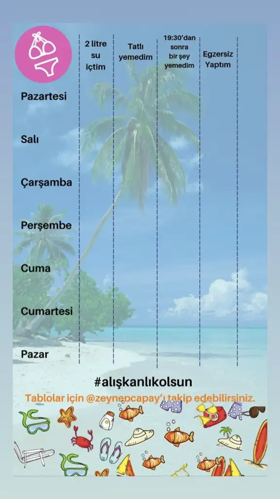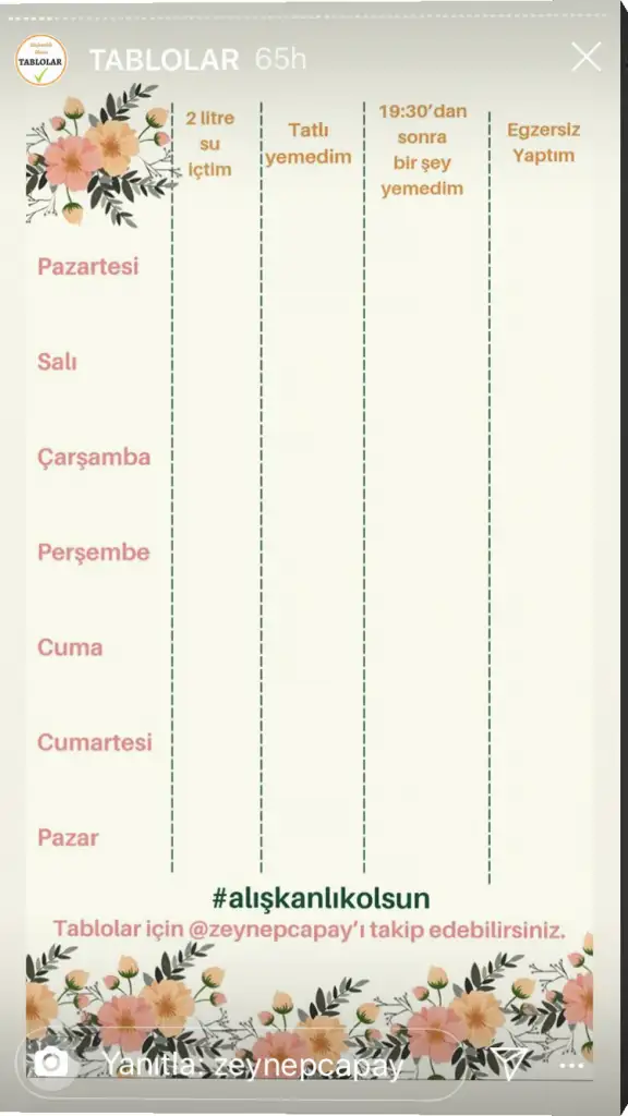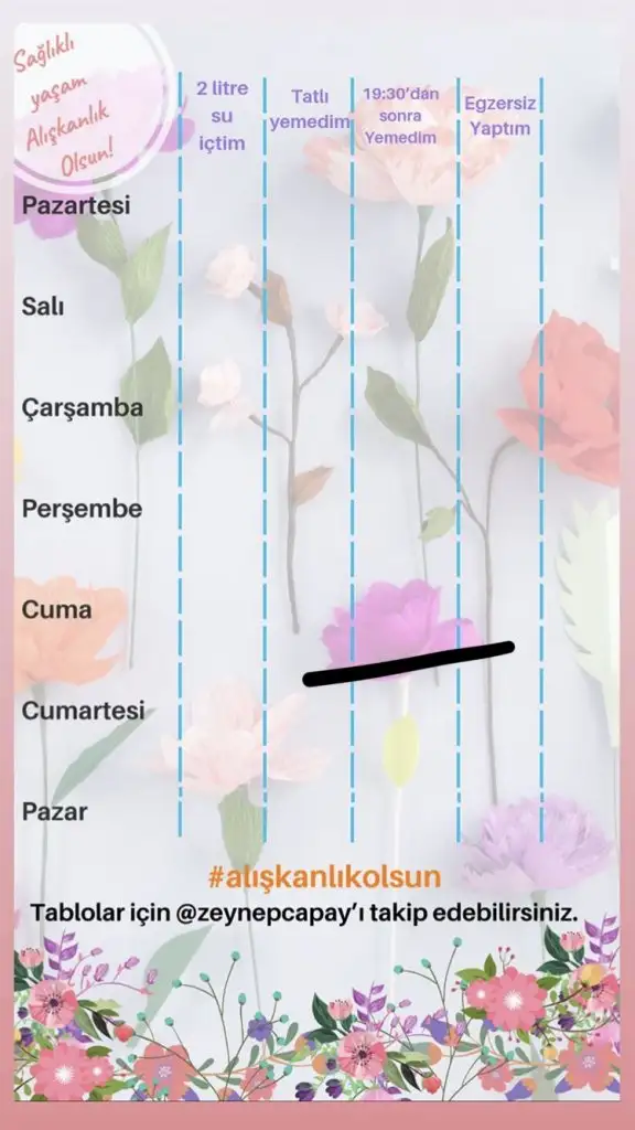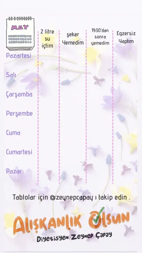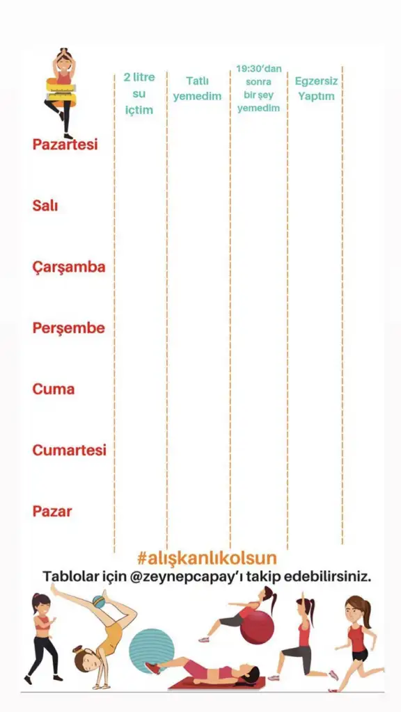 Kızlar bir de böyle tablolar var internette Ramazan ve normal dönem için belki buzdolabı ya da mutfak kapısına ya da boy aynasına assak motive olabiliriz. Ben geçen sene yaptığımda elle kendim yapmıştım eşim bile takip etmişti. Görseller instagramdan