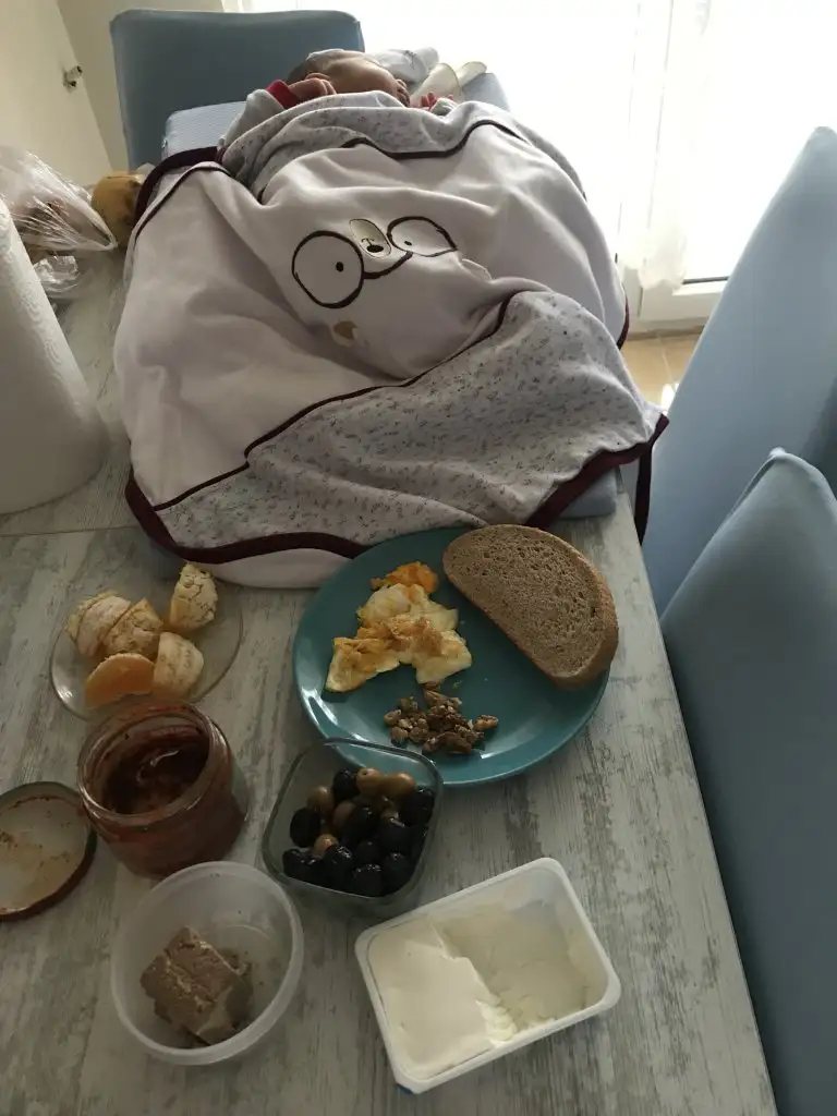 Ay daha minnacikkk... Kaç aylık?Selam kızlar dün geceden beri gazlı bebiş o yüzden yazamadım. Kahvaltım resimdeki gibi arada sade Türk kahvesi 2 kayısı 2 ceviz içi. Akşam yemek yapamadım dürüm kebap söyledim. Bir tane de Elmalı kurabiye yedim dün misafir olunca eşim almıştı geç oldu diye yememiştim bugün bebek tüm gün kucağımda olunca yedim valla. Bebeğin en gazlı gününde ve kızım da evdeyken tek başıma baya zor bir gün oldu. Erken yatmayı planlıyorum