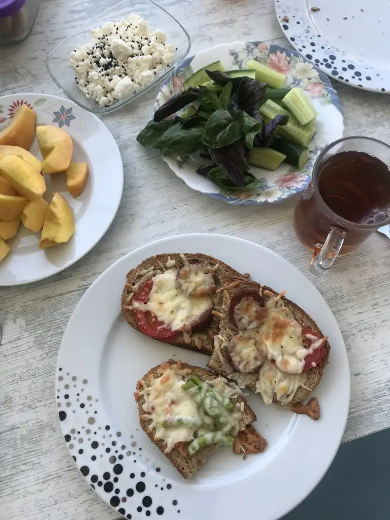 Bizde Afyon'da durduk minik iki tane çekme helva yedimSabah caglaya laf ettim ama kendimde denim dedim taze taze avakado aldim yumurtayla cirptim yedim begendin mi begendim cunku icin baharati bastim tadini hissetmedim yoksa eminim rezalettir. 30 dk full body tabata+ esim evde oldugu icin 30 dk da streching yaptim kus gbiyim suan birazda esneyelim