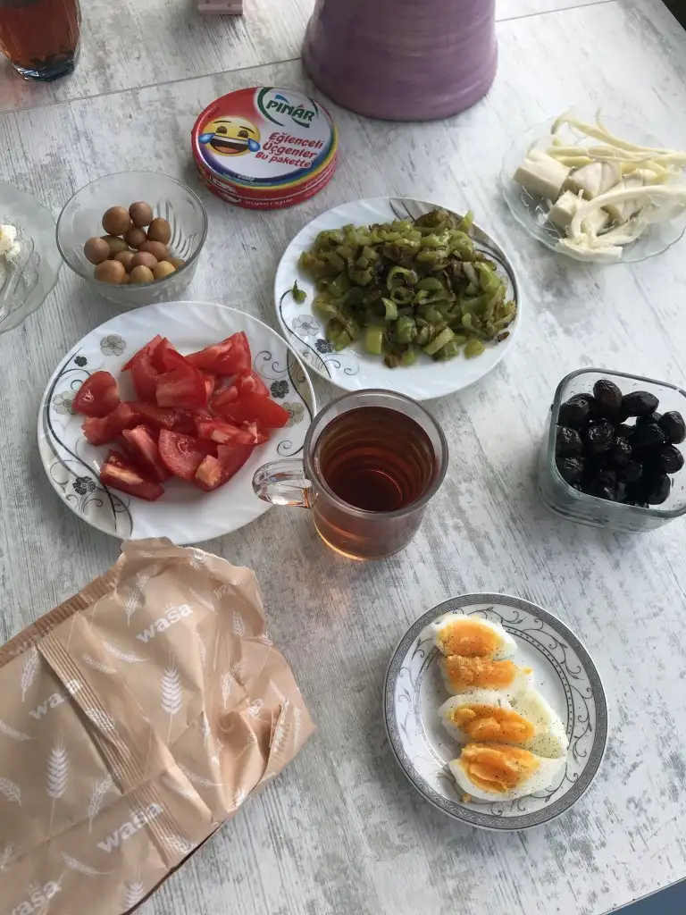 Sabah 1 haşlanmış yumurta 1 üçgen peynir 7 zeytin 2 wasa