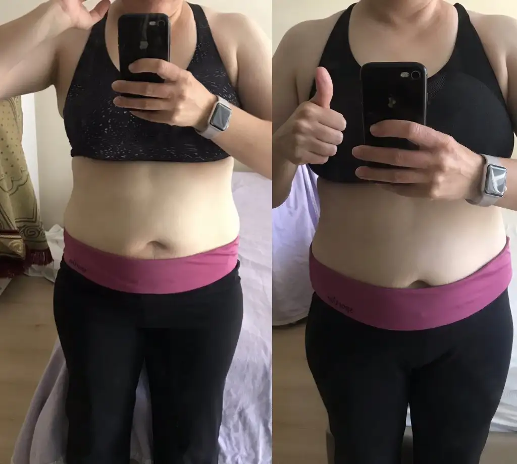 Bir de cuma ve bugün aynı kıyafetle spor yapıp fotoğraf çektim. Bir iki gündür kol ve göğüs egzersizleri de eklemiştim 1-2 dk göğüs altımdaki bombe azalmaya başlamış sanki. Sol yeni sağ eski olan. Arada 4 gün olması umutlandırdı beni. Hem de yarın filan regl olurum yani. (Bu arada lütfen eş ve yetişkin erkeklerin fotoyu görmemesine dikkat edin lütfen)