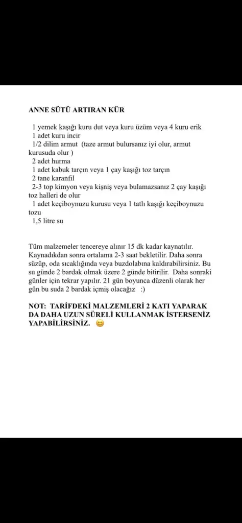 • ANNE ÇAYINI YAZDIĞIM YERLERDE GÜNDE 2 KUPA OLARAK İÇEBİLİRSİNİZ. (önerdiğim güzel içerikli şekersiz kalorisiz anne çayı markalarını grupta paylaşmıştım kendi çayım galaktofit ise trendyoldamevcuttur, marka farketmez anne çayınız bunlardan biri olursa iyi olur )