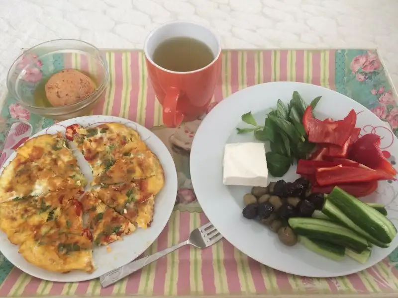 Kahvaltıyla öğle yemeği karsık oldu biraz ama ekmek tüketmiyorum
