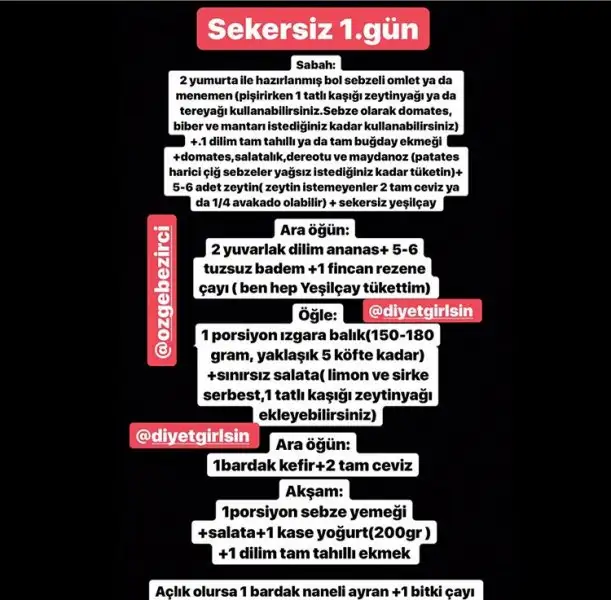 Selamlar hayırlı akşamlar kızlar dün gezmelerdeydim bugün temizlik yaptım büyük kızım rahatsız biraz ama diyete devam e yarın başlıyormuyuz şimdi 21 gün şekersize G guziss35 sen liste mi yapsan acaba kaç kişi olduk ben biraz araştırdım günlük hazır menüler var evde olanlarla başlıyım diyorum atabilirsem atayım buraya