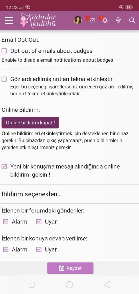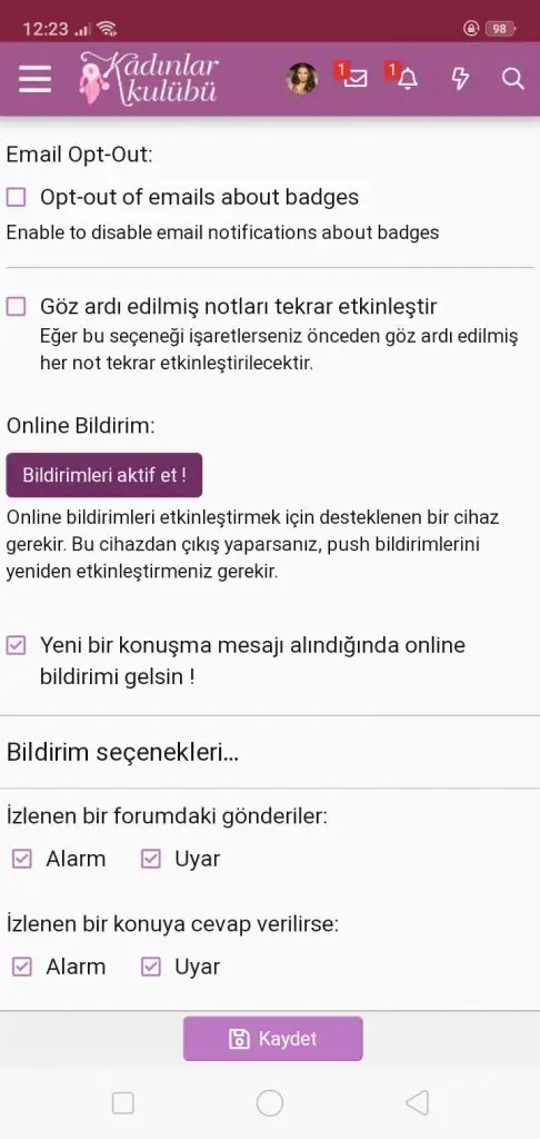 Youlost16 .!.: Abla yok o cıkmıyo bildirimleri aktif et yazmıyo safariden girdiğim için mi acaba uygulama yok çünkü Genişletmek için tıkla... Canım tarayıcından olabilir Uygulama önemli değil canım chorme,mozillada bile bildirim var:)
