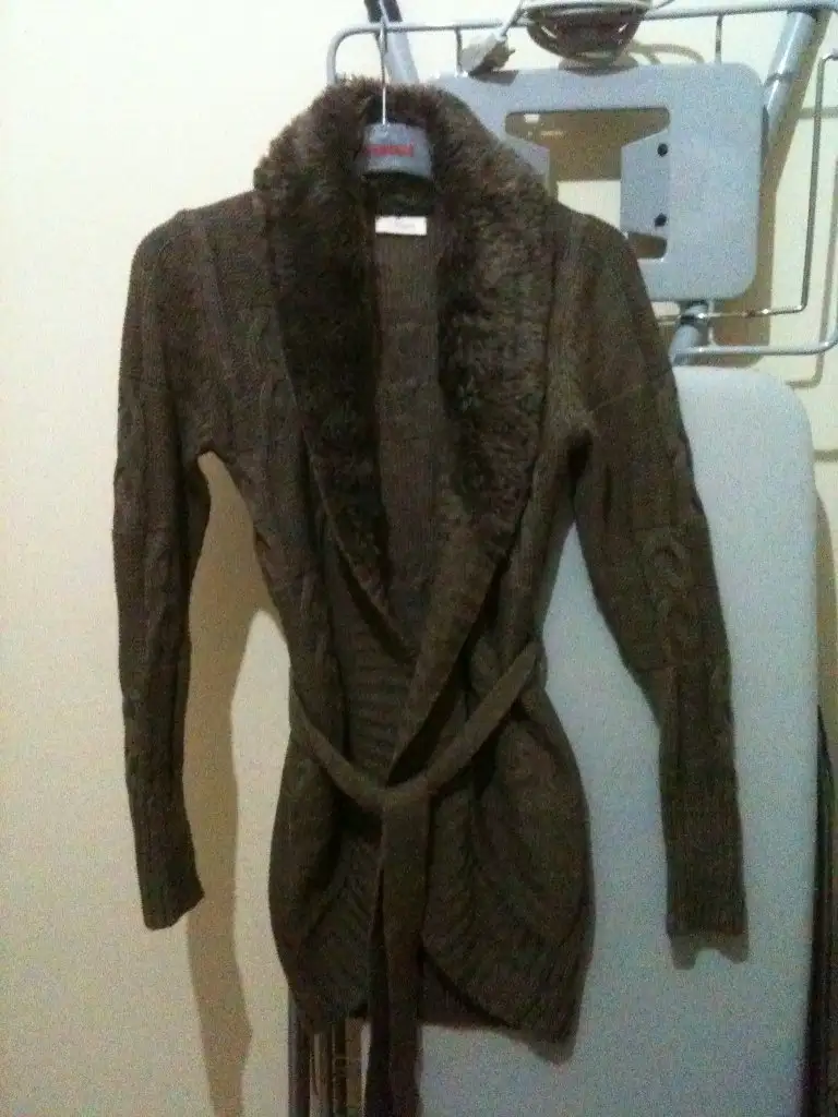 yakası kürk detaylı uzun hırka s beden
