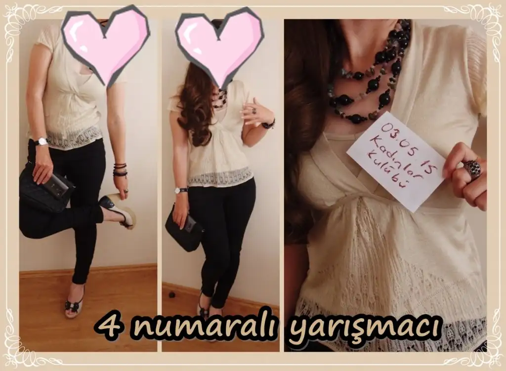 15 Numara: Üstündekini beğendim, özellikle de rengini ama benim tarzım dışı :) Ayakkabının pembesini sevemedim. Genel olarak uyumlu gibi ama ayakkabı farklı olsa daha güzel olurdu. Başarılar!