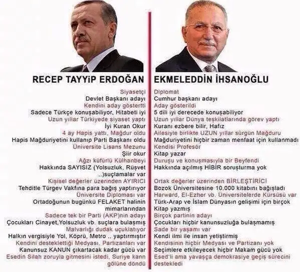 Cumhurbaşkanı adayı ve Başbakan Tayyip Erdoğan, muhalefetin adayı Ekmeleddin İhsanoğlu'nu eleştirerek, "Neymiş profesörmüş neymiş 3 dil biliyormuş yahu biz tercüman mı arıyoruz. Tercüman arıyorsak çok. 3 dil –bilen de var 5 dil bilen de var. Ben işte tercümanlarla götürüyorum işi" dedi.