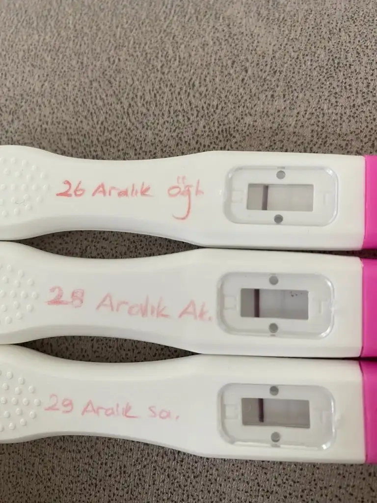 Sürekli soru soruyorum kusura bakma canım anlamaya çalışıyorum, peki bu 3 testi yaparken aralarında günler var mı 3 testi 1 defa da mı yaptın ?İlk test prodictor erken gebelik silik