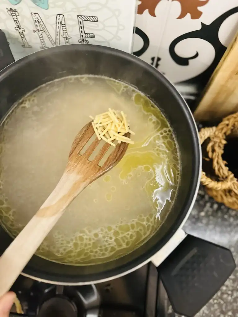 - Erişteyi bol tuzlu, kaynar suda 15 dakika haşlayıp süzün. Süzerken suyundan bir su bardağı ayırın.