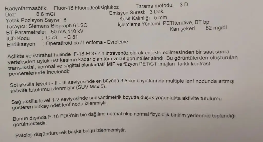 Merhaba çok geçmiş olsun babama yaklaşık 8-9 yıl önce lenfoma teşhisi kondu. Kendisi ilk evrede erken teşhis edildi. Bu hastalıkta moral çok çok önemli yanında olun ve moralini yüksek tutun