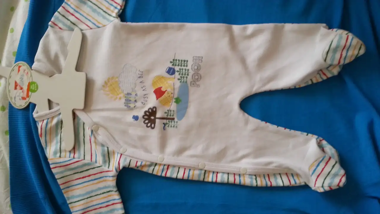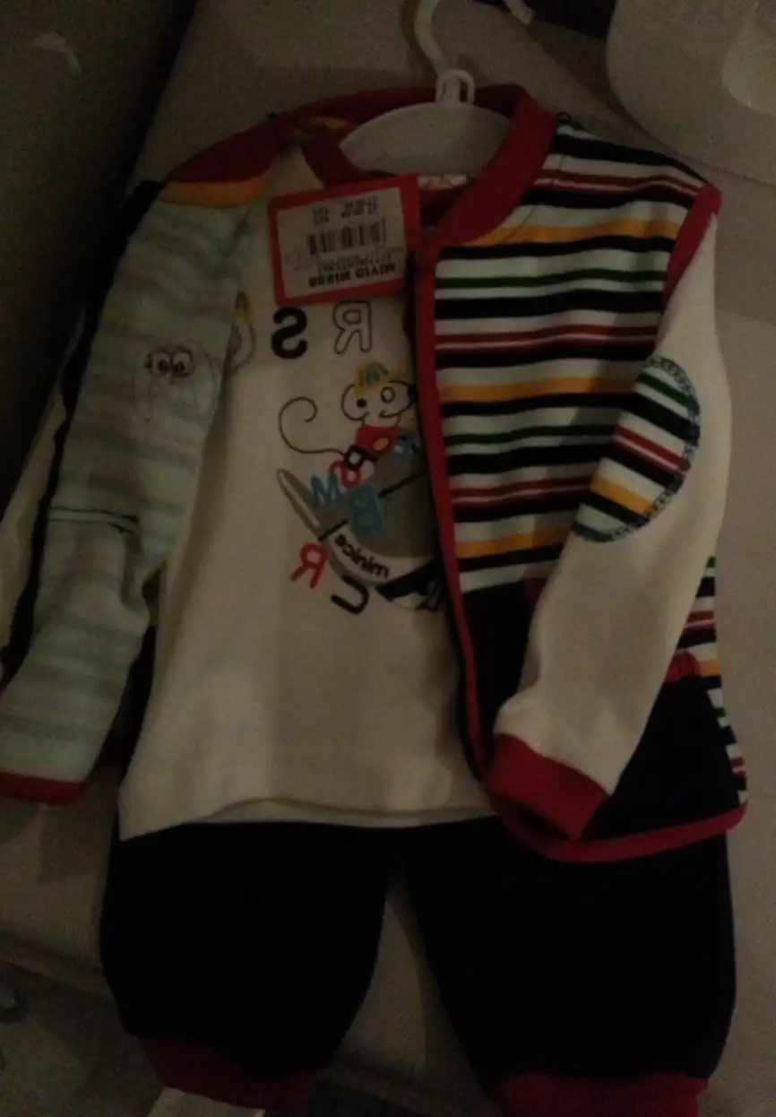 Peki tulumlar 0.3 ay miCanim birde bu uclu takimlar var askinda cok canlu renkleri var ama isiktan oyle cikmis etiketleri ustunde cizgili tisortlu takim 20tll desenli tshirtli takim 25 tl ikiside kislik etiketlu disney ler tane 12 tl oda karron askili etiketi zaten askisi oluyor yani oda etiketli birde 18 numara bot var sifir dusunursen oda 25 tl lacivert ortopedik