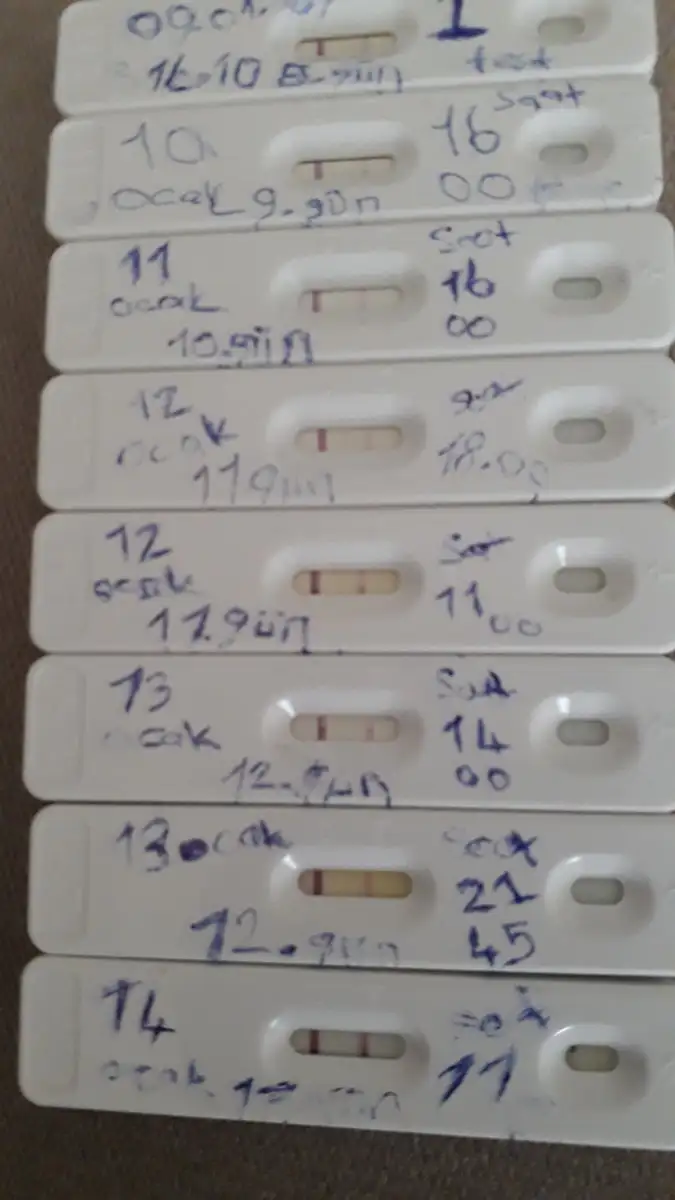 Kizlar saat 08. 20 de ilk idrari yaptim saat 11 .05 te testi yaptim bugun 13. gunum yazamadim kalemim bitti