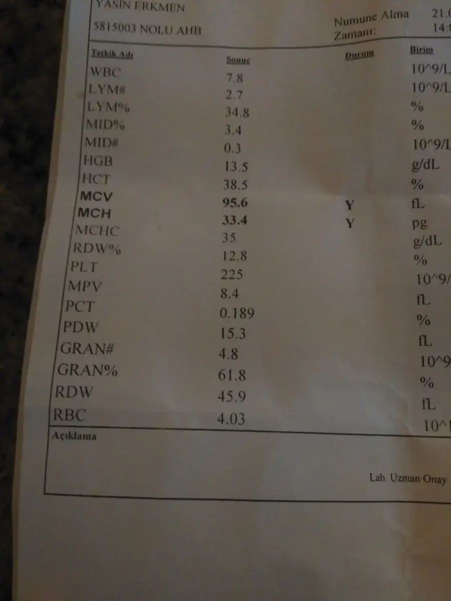 Bu normal kan degerlerine bakılan tahlil kagıdı