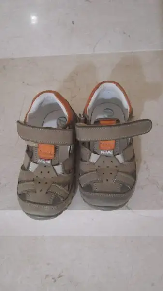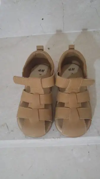 Açık kahverengi olan sandalet 24 numara h&m'den alinmistir. Bir defa giydi oğlum ayağıma küçük geldi deyip bir daha giymedi fiyatı 20 lira.