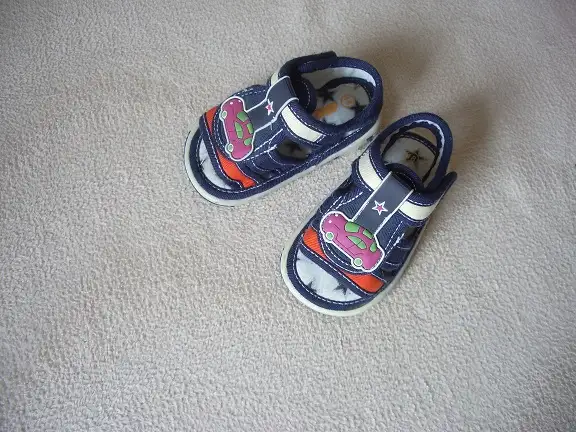 18 numara yazlık lacivert sandalet,yumuşak taban topuğuna basınca ses çıkarıyor.10 tl