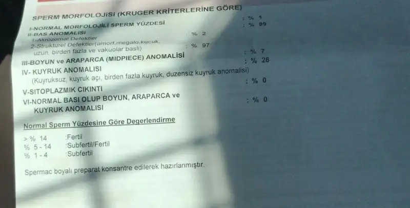Banada umut oldun cnm. Teşekkürler. Allah kucagina almayı nasip etsin. Ne kullandınızMerhabalar esimin ilk sperm sonucu toplam sayi 150 milyon cikti.özel bi hastanede yaptirmistik.sorun yok diye sevindik.daha sonra hamile kalamayinca bi tanidik araciligiyla tup bebek merkezine gittik.orda tekrar esim test yaptirdi toplam sayi 6 milyon ileri hiz 0 dendi.yani normal yolla hamile kalamazsin dediler.biz suphelendik biraz guvenemedik yani arada cok fark vardi.daha sonra devlete yaptirdik orda da toplam sayi 7 milyon cikinca normal yolla olmayacak diye dusunduk.ama Allah'ın mucizesi iste bir ay sonra hamile oldugumu ogrendim cok sukur. Allah isteyen herkese nasip eder insallah canim.