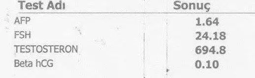 Elimizde sperm testi, fsh lh testesteron değerleri ve ultrason sonuçları var.