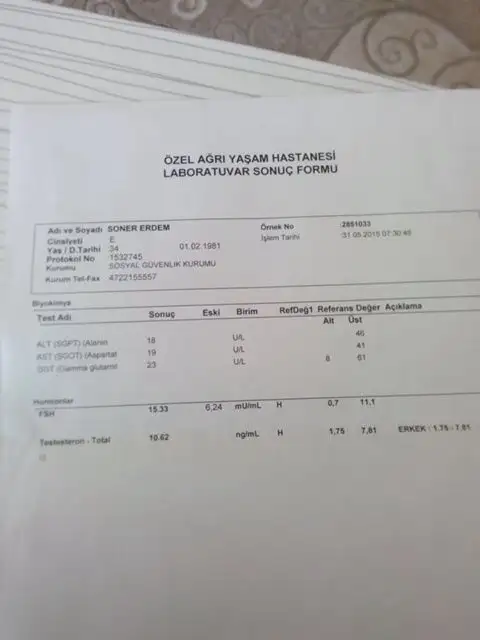 Canim uzulecek birsey yok gayet iyi sonucunuz FSH ve Testesteronu ilaclar yükseltiyor..onemli olan karaciğer enzimleri onlar da iyi cikmis..bizim degerlee cok cok daha kotu..buna ragmen hoca esime ben bilerek yukselttim demis..bosuna uzulmeyin..Canlar benim eşim 1 ay oldu ilaçları kullanıyor bugün test yaptırdık ve testi yaptırdığı hastahane değerlerin yüksek çıktı dedi ne olur bilenler bi yorum yapsın moralimiz cok bozuk