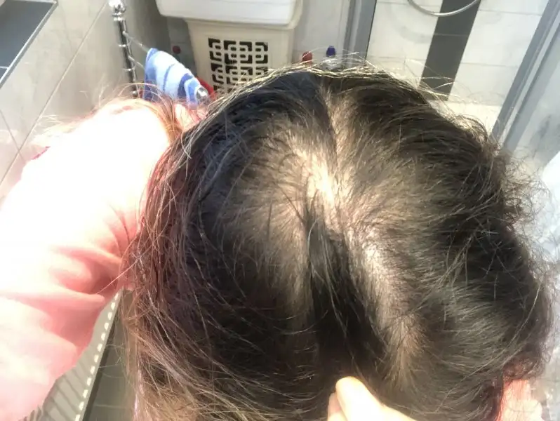 Ama sanırım senin benden daha agresif bir dökülmen var canım. Ben 34 yaşındayım. Saçlarım suan bu durumda.