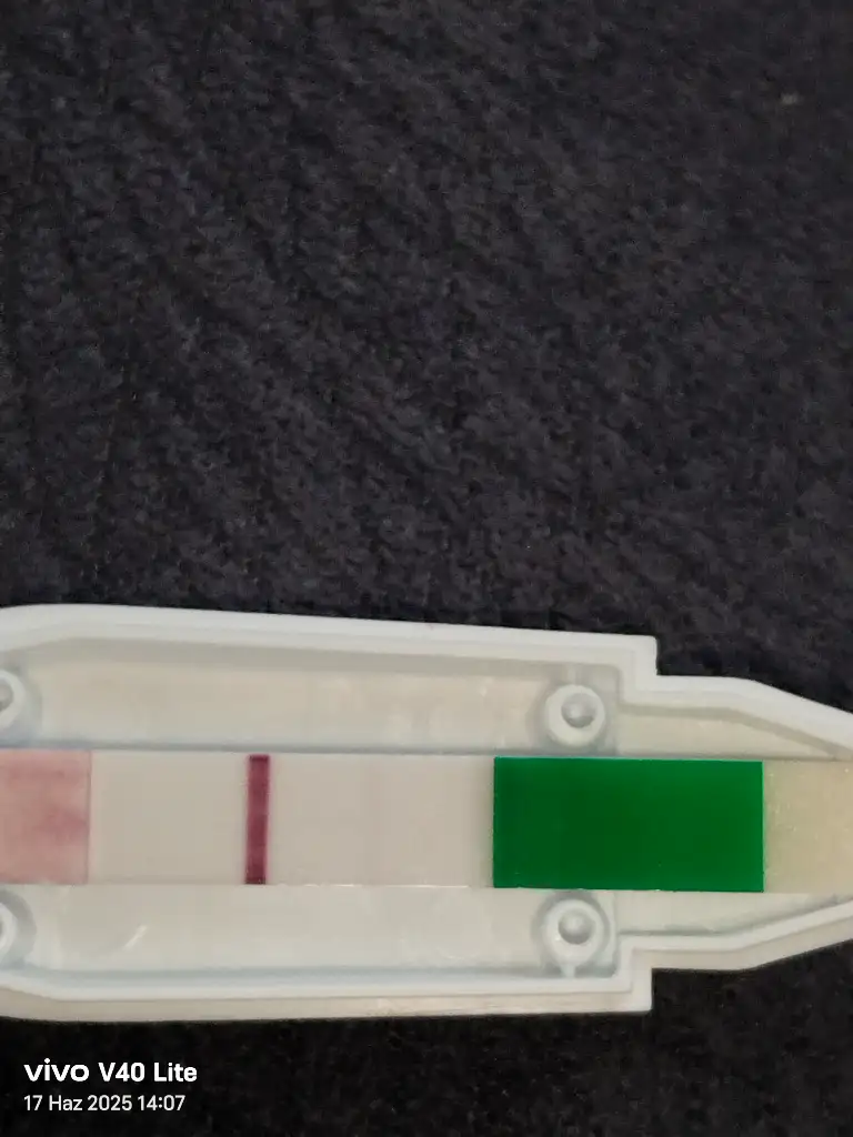 Bende Awox da böyle çizgi gördüm diğer testlerde denedim silik çıktı bir kaç gün bekleyip öyle kan test vermek istediğim için şuan beklemedeyim ama benimkide böyleydi fotoğrafını attım