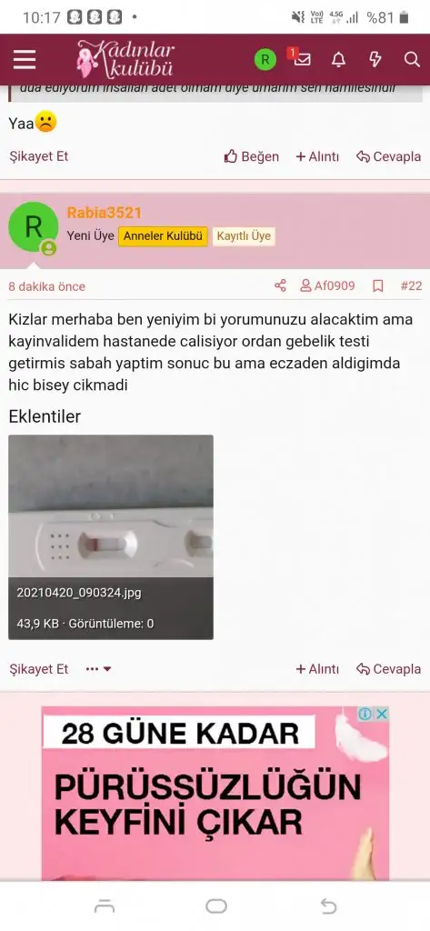 Bu sabah tekrar test yaptım silik çizgi koyulaştı kan verdim dr gösterdim hamileymişim ama kan değerimin daha da yükselmesi lazımmış 😒
