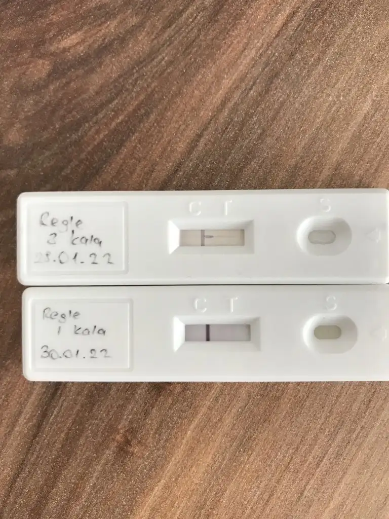 Bu arada kasık ve bacak ağrıları çok şiddetli değil sadece sızlama ve hafif batmalar şeklinde kesinlikle regl dönemine benzemiyor. Pazar günü erken gebelik testi negatifti. 27 Ocak sabahı reglime 3 gün kala standart gebelik idrar testimde 2. Silik çizgiyi de görmüş bulundum hiç gecikme olmadan.
